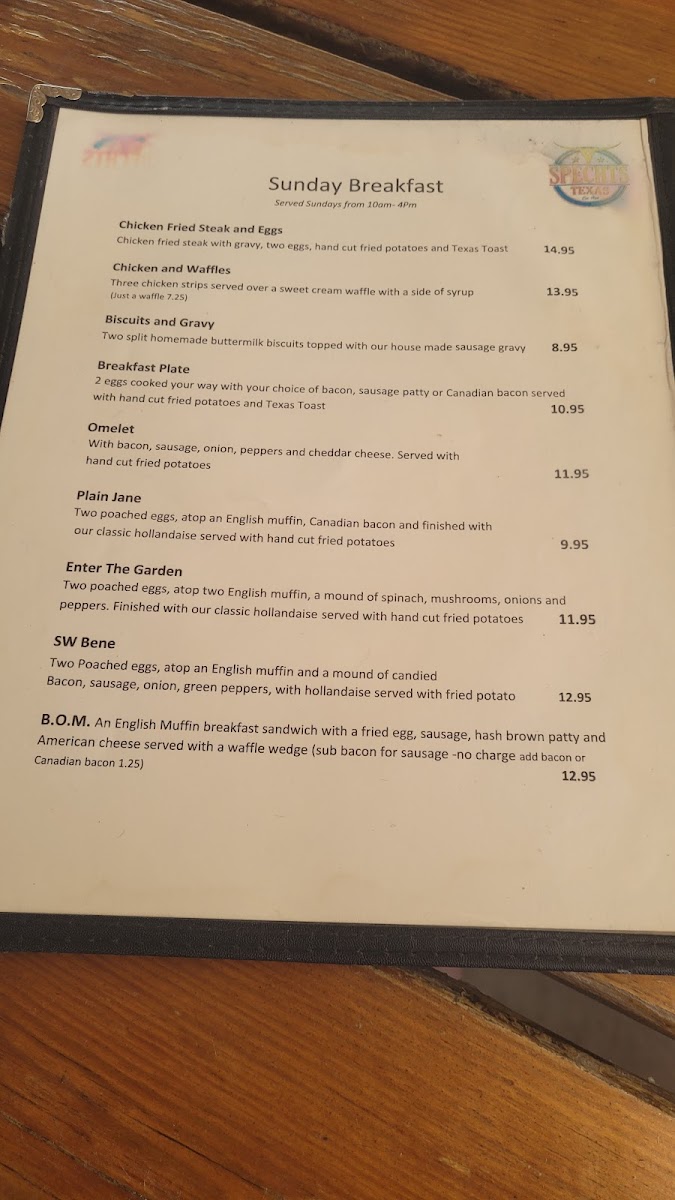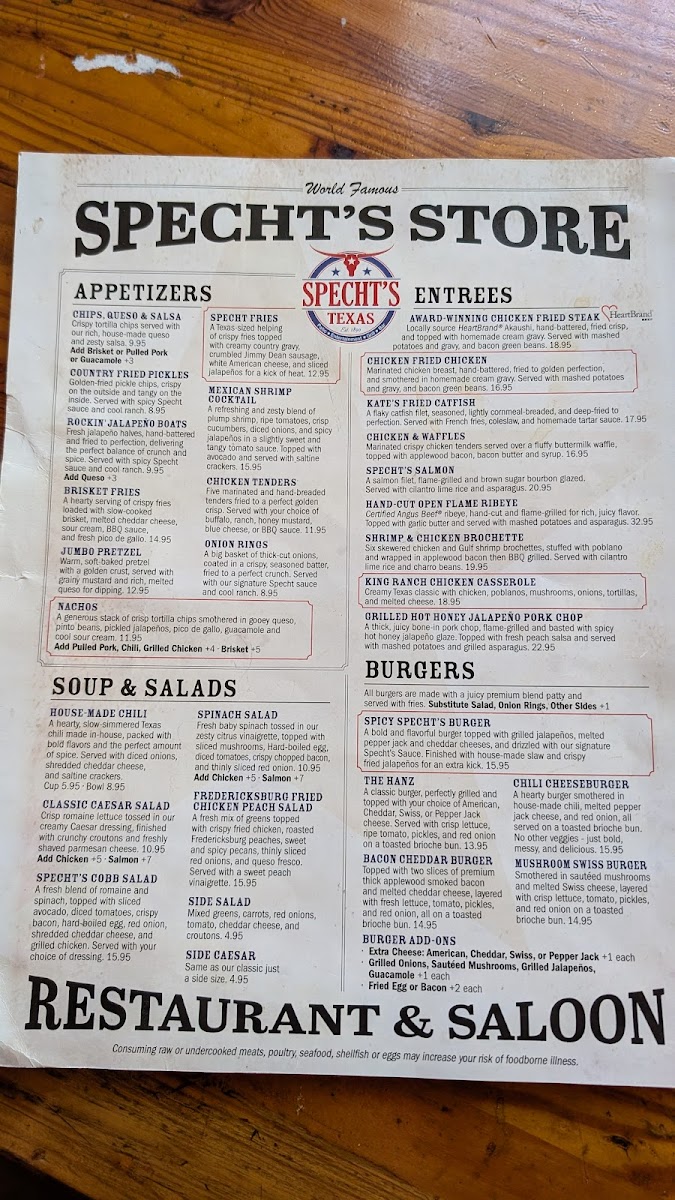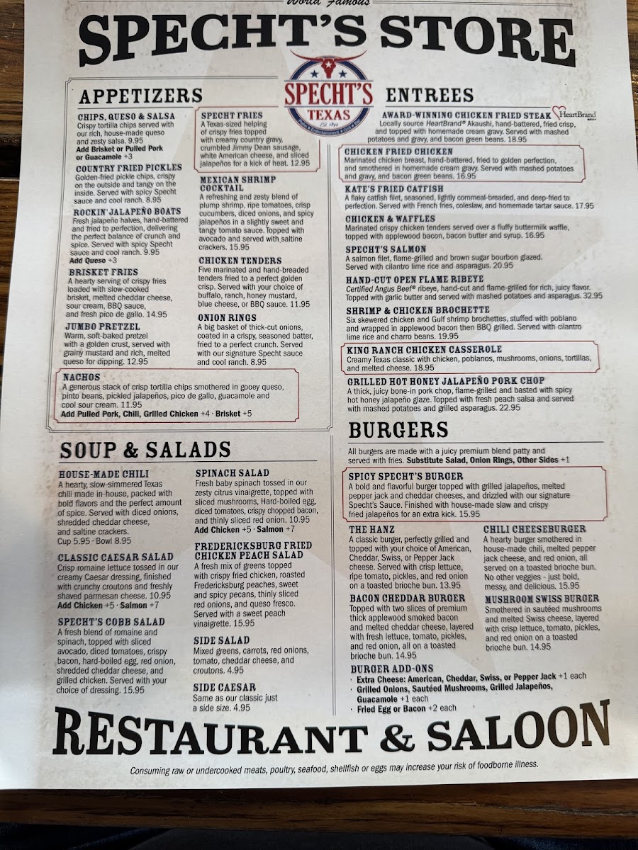 Entrees like the Chicken Fried Chicken ($16.95) and Chicken Fried Steak ($17.95) showcase Texas tradition, enveloped in rich homemade cream gravy. Don’t forget to try the juicy Hanz Burger ($12.95), served on a toasted brioche bun. With fantastic food, live music, and a welcoming atmosphere, Spechts Texas offers not just a meal, but an experience worth cherishing!